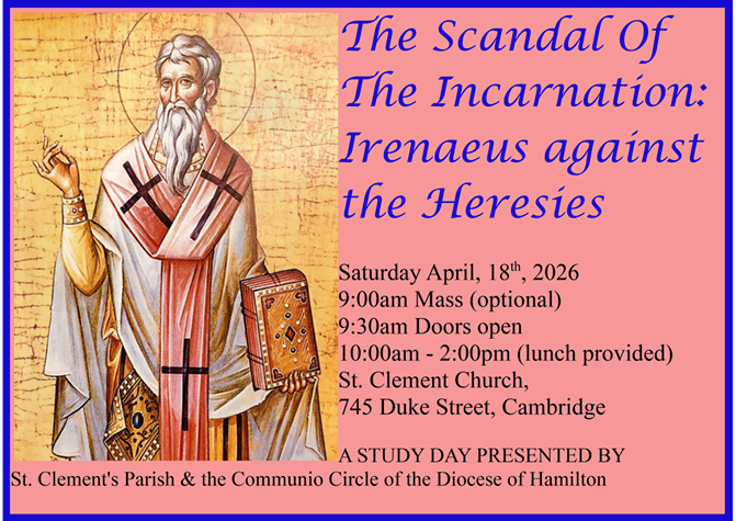A Study Day co-sponsored by the Communio Circle of the Diocese of Hamilton and St. Clement’s Parish, Cambridge